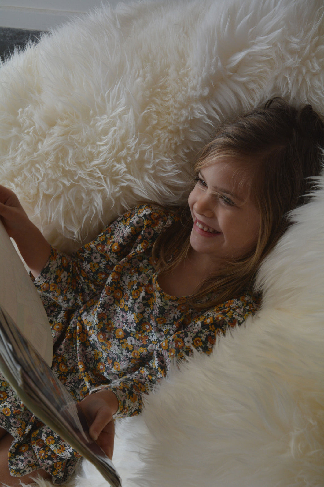 Calming Qualities Sink into the natural sheepskin fibre and take a moment out.