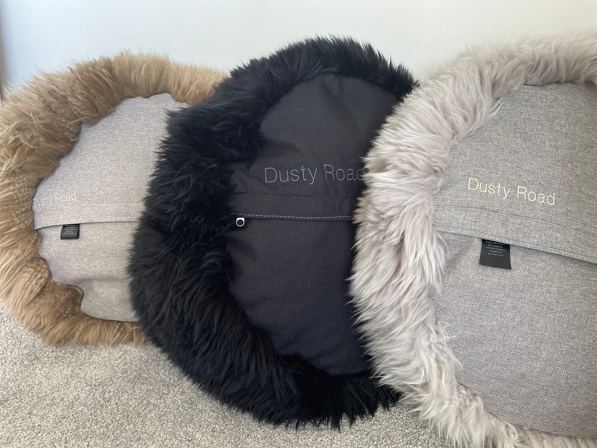 These Dusty Road Floor cushions are NZ made with Nz sheepskins.